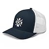 6 panel trucker with pre-curved bill, soft mesh backing, and an adjustable snapback closure