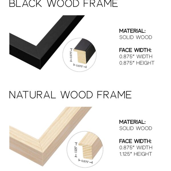 - .875” Wide x 1.125″ Tall Solid Wood Frame
