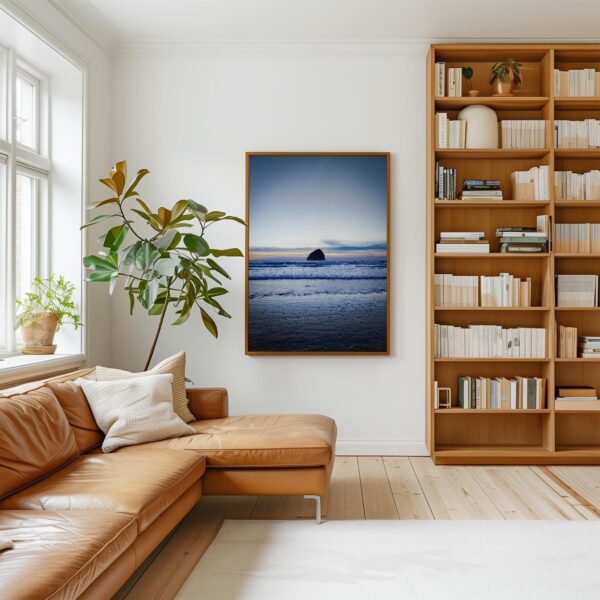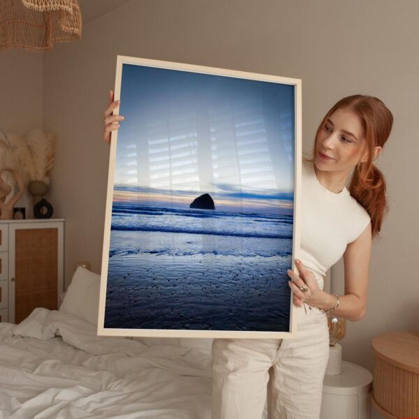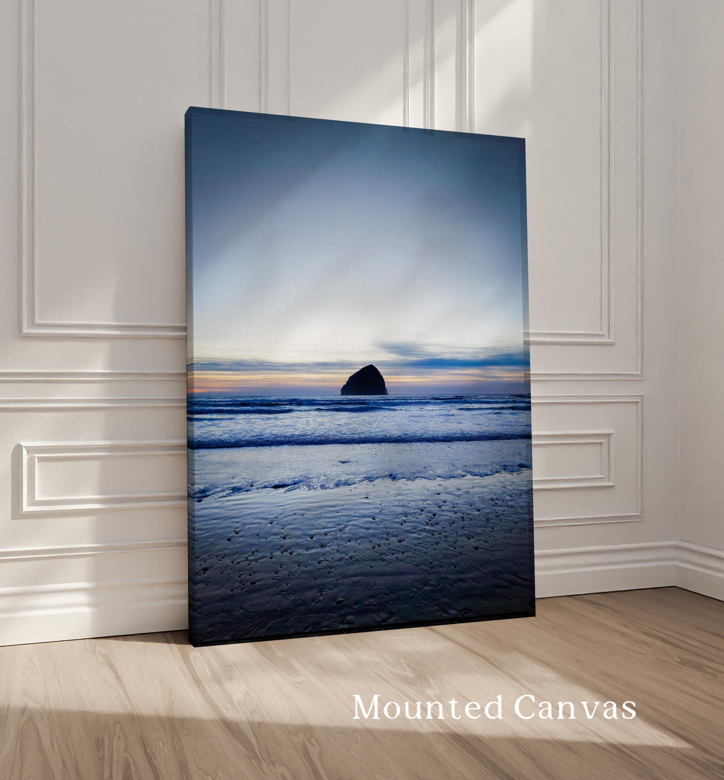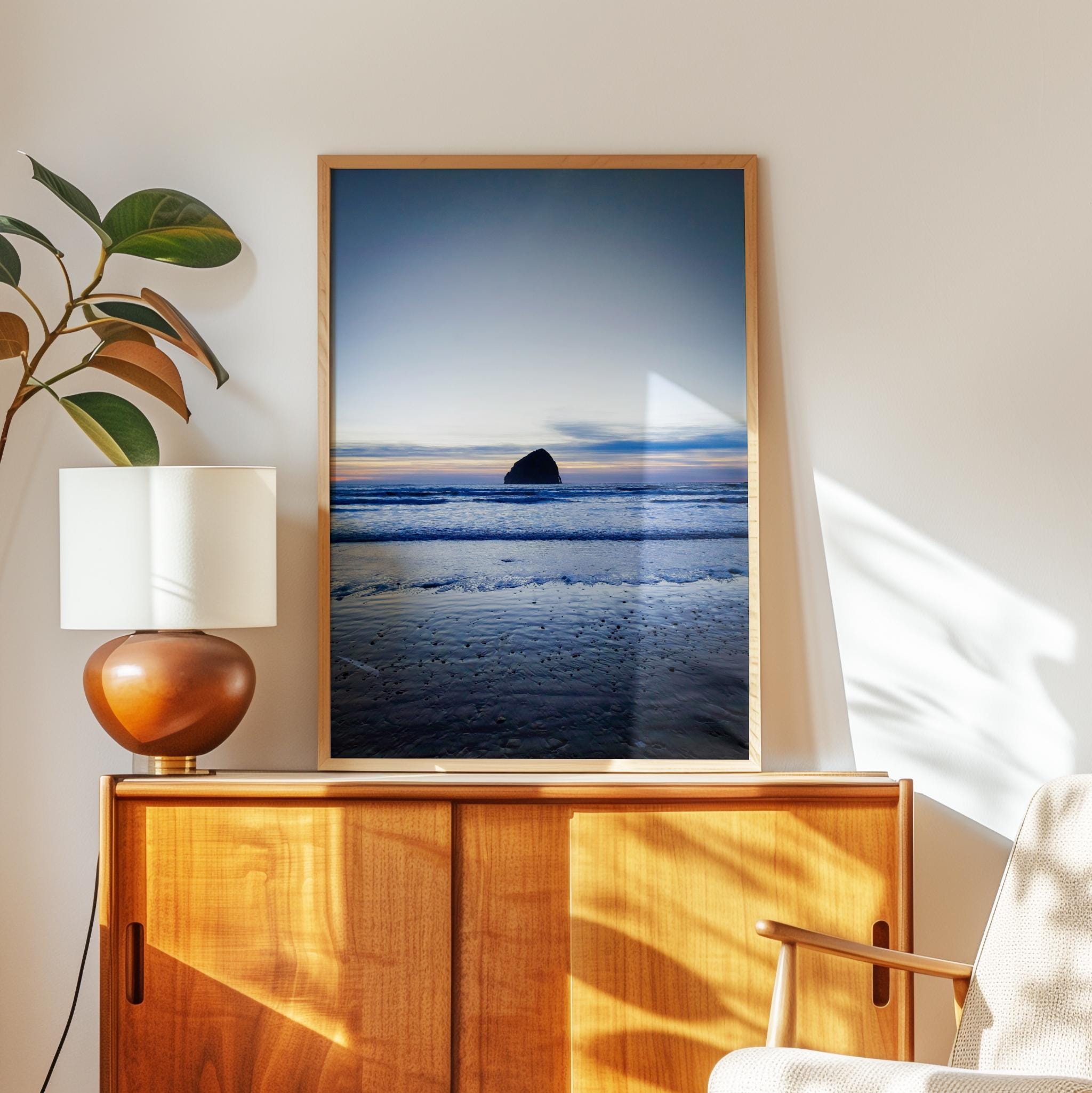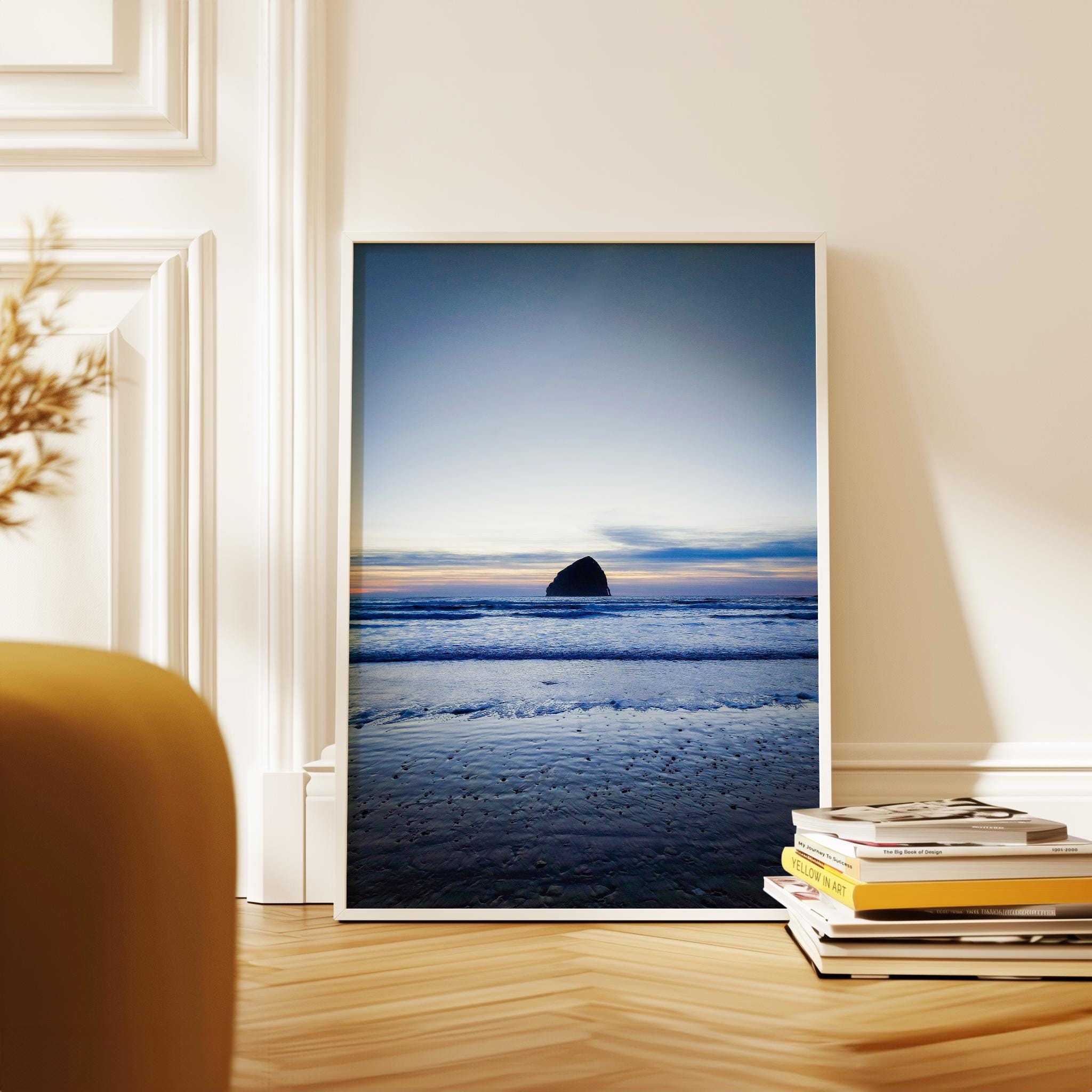 Bring the beauty of the Oregon Coast into your home with this stunning photographic art print by Jessie Dysart. Capturing the serene view of Haystack Rock at Pacific City during sunset, this piece highlights the peaceful blend of ocean waves, sandy shoreline, and the soft hues of twilight sky. The photograph’s calm, minimalist aesthetic makes it perfect for coastal décor, modern interiors, or anyone who finds inspiration in the sea.